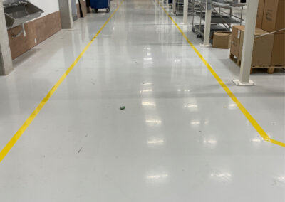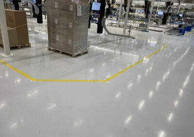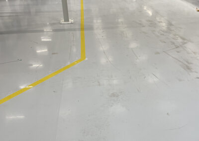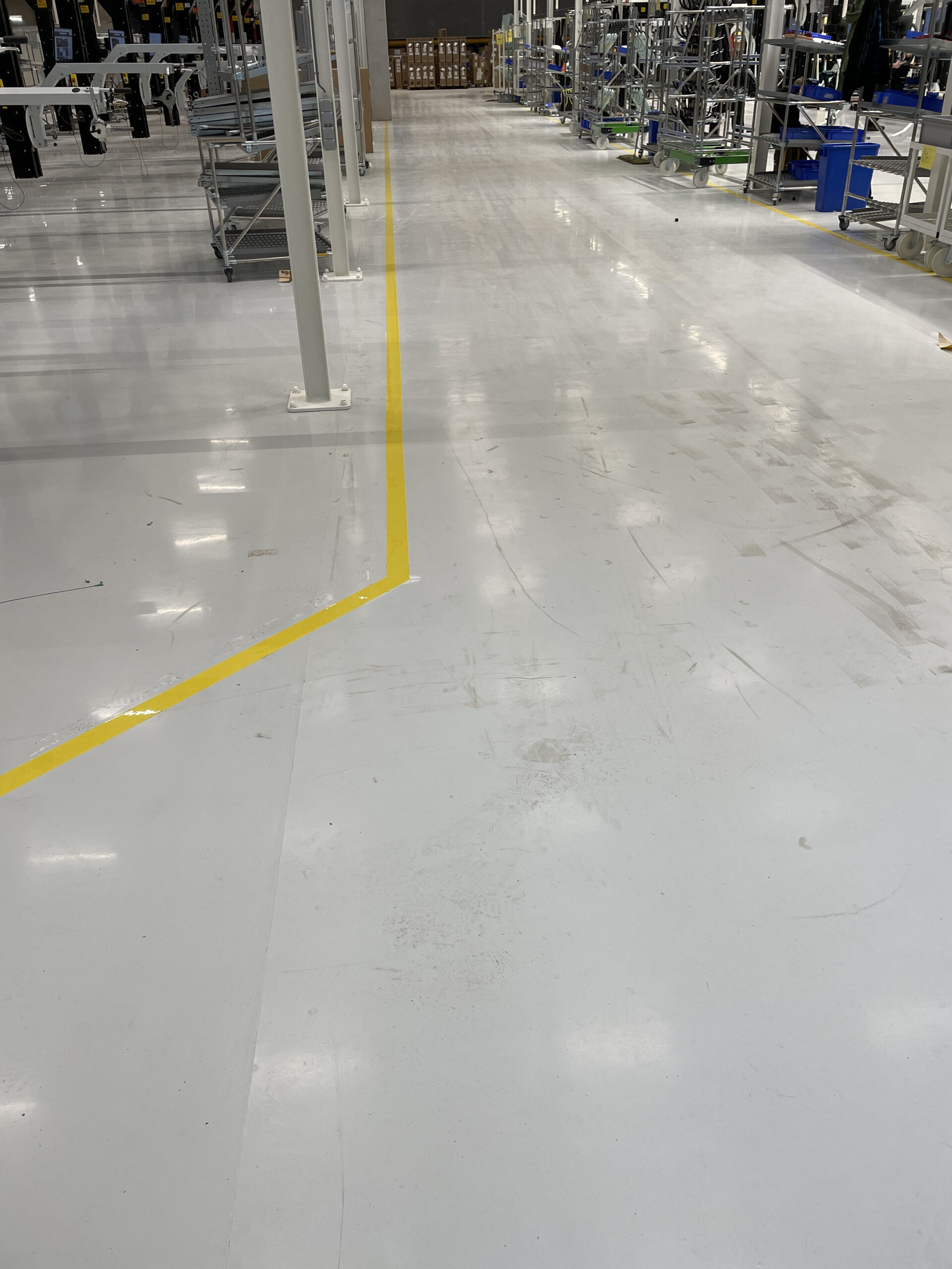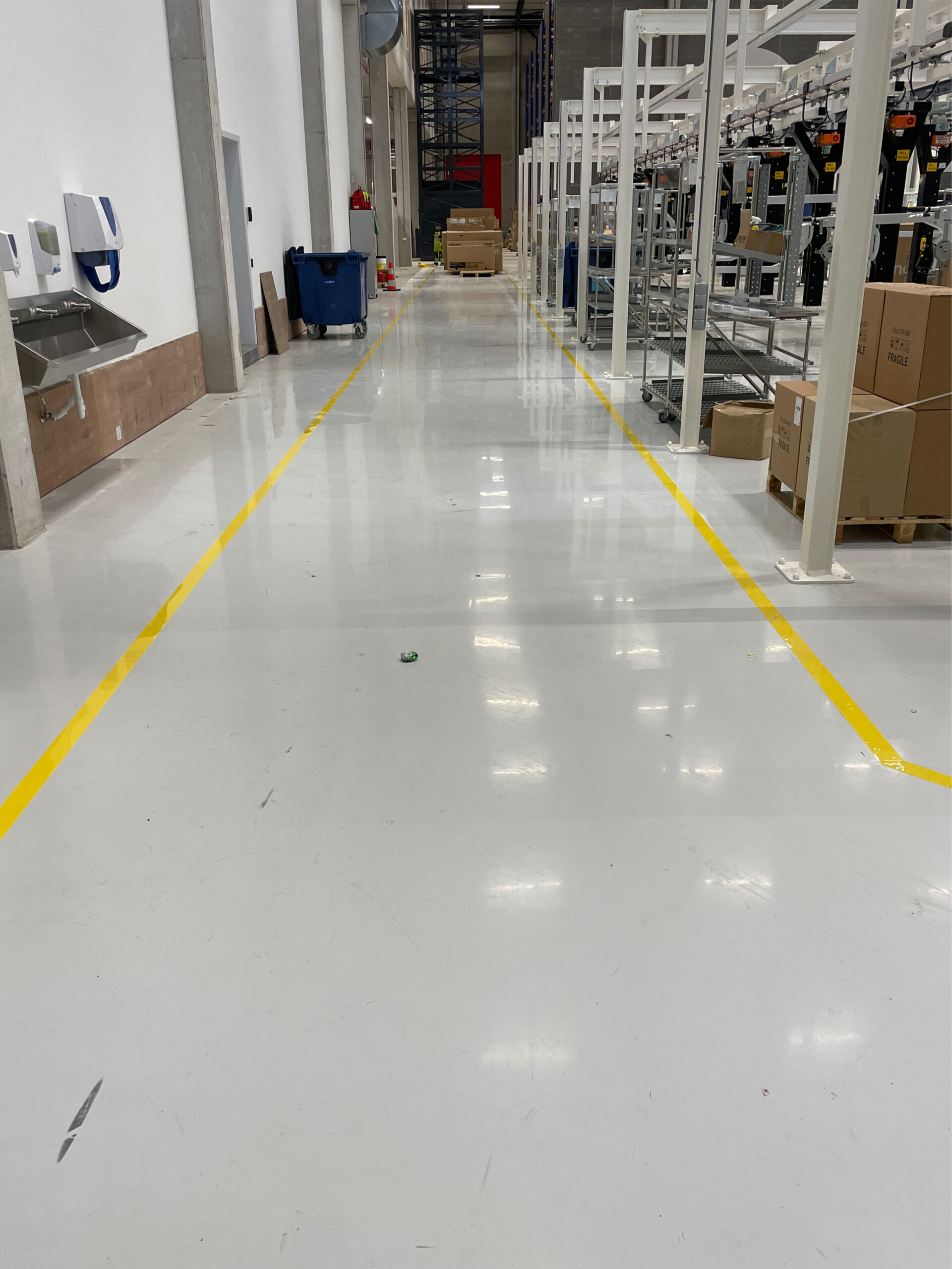 Omdat er net een mooie gecoate vloer is aangelegd hebben wij, tezamen met de klant, besloten om tape belijning aan te brengen.