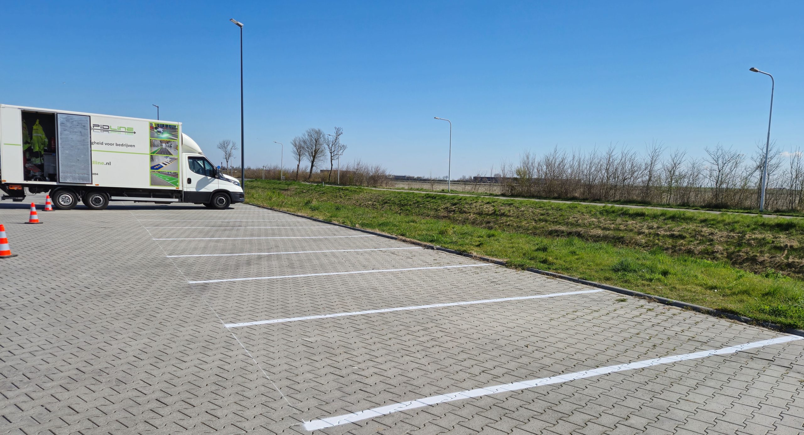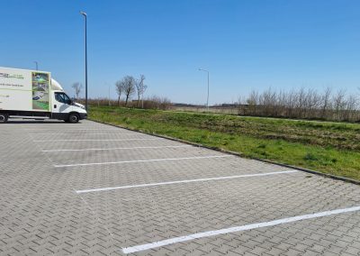 Buiten hebben we het parkeerprobleem aangepakt. Door de snelle groei van het bedrijf was er behoefte aan meer parkeerruimte. Wij hebben dit opgelost door het aanbrengen van duidelijke en functionele nieuwe parkeervakken.